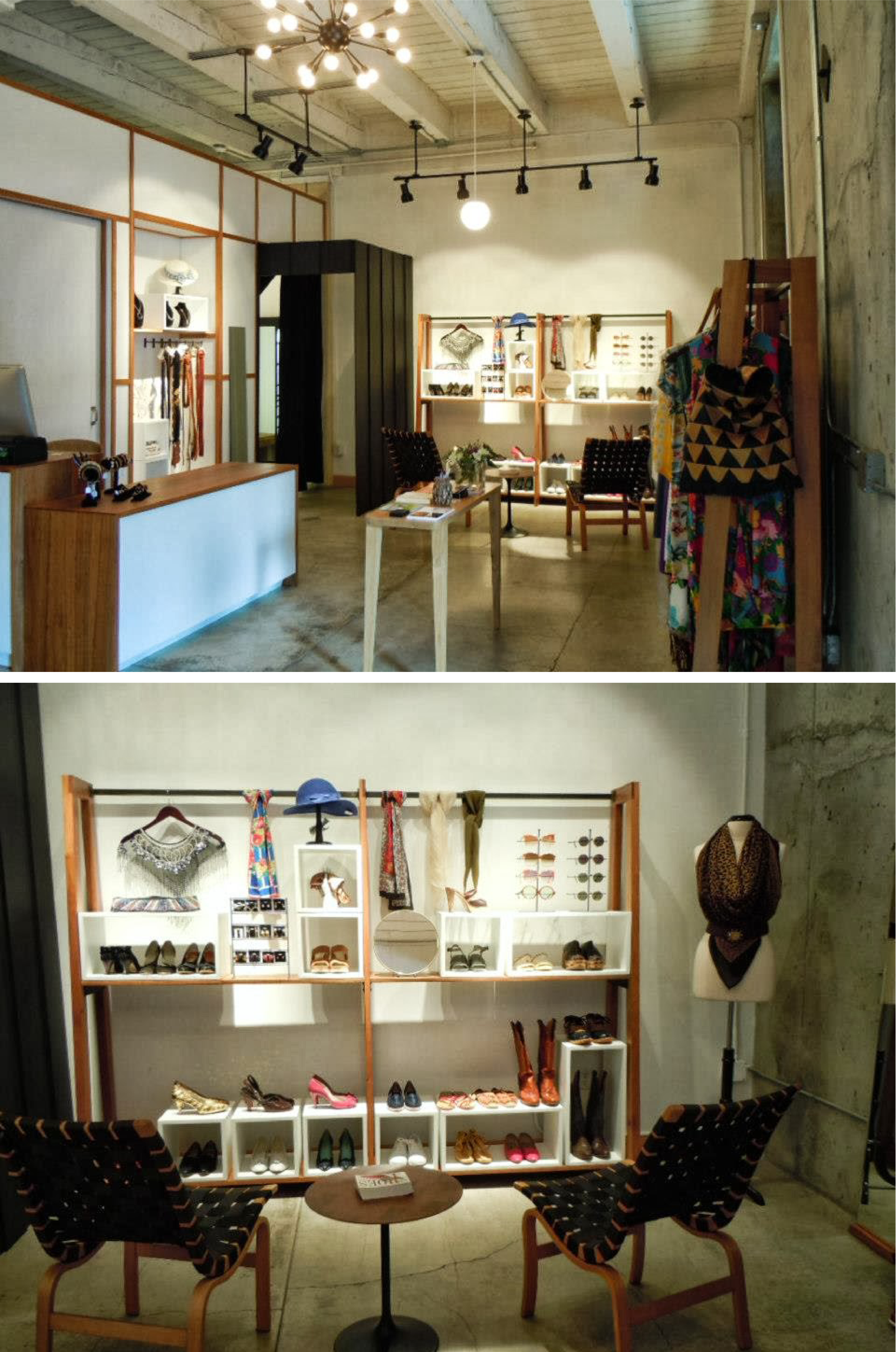 Partnered with interior designers from the GoodMod in Portland Oregon to convert a studio apartment into a 1/2work 1/2live space for a Portland Oregon vintage clothing shop. The retail shop included; faux dividing walls, a cash wrap, 10 clothing racks, 3 display tables, 1 changing room and a separate entry from the living space.